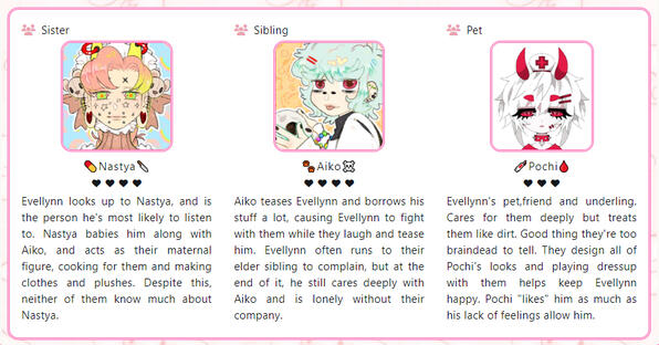 | Diona | she | girl ig | likes older men :/ | hypersexual from trauma, depressed | 13 |